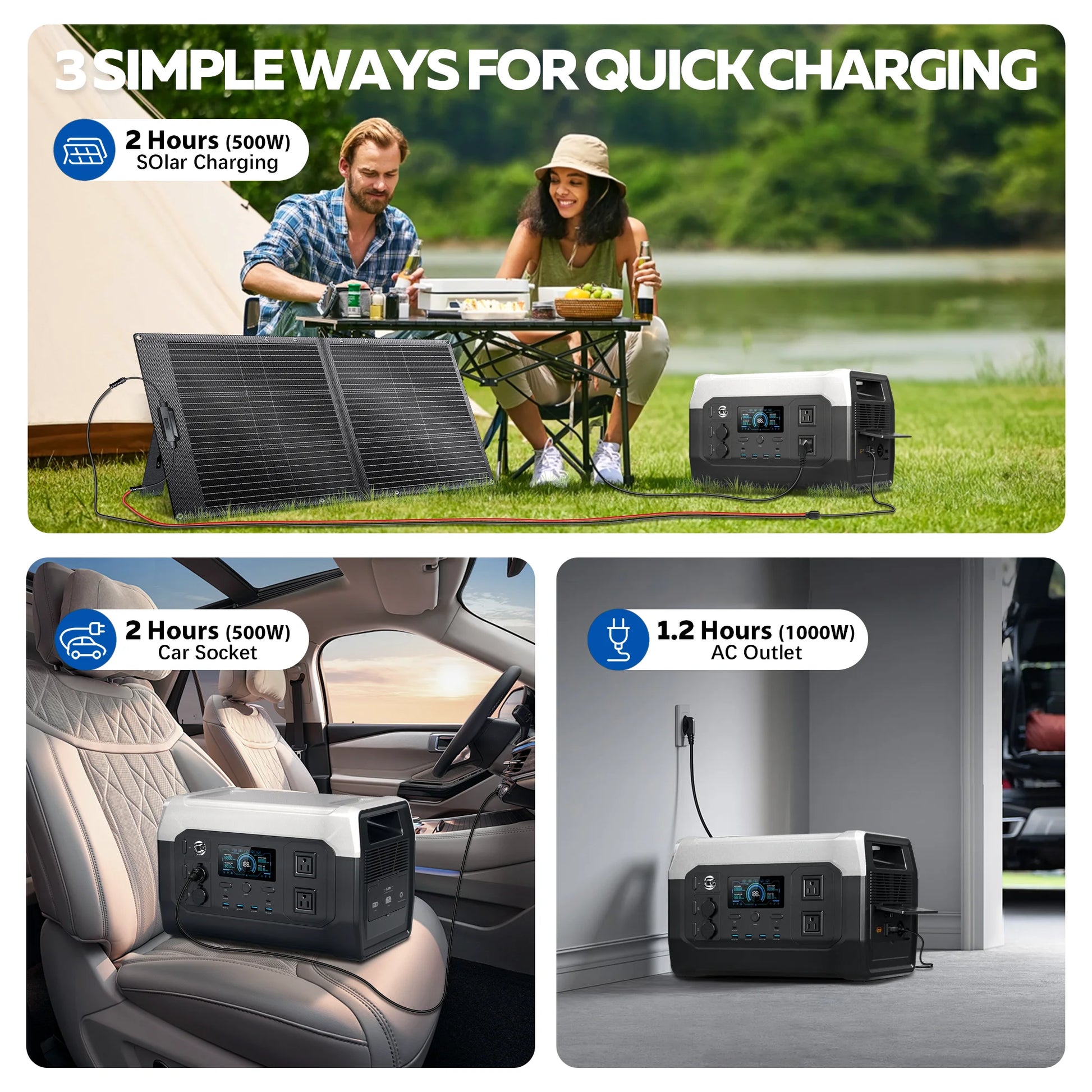 - You get a high-capacity 1024Wh LiFePO4 battery for long runtimes, with about 3,000 cycles and >80% capacity retention.