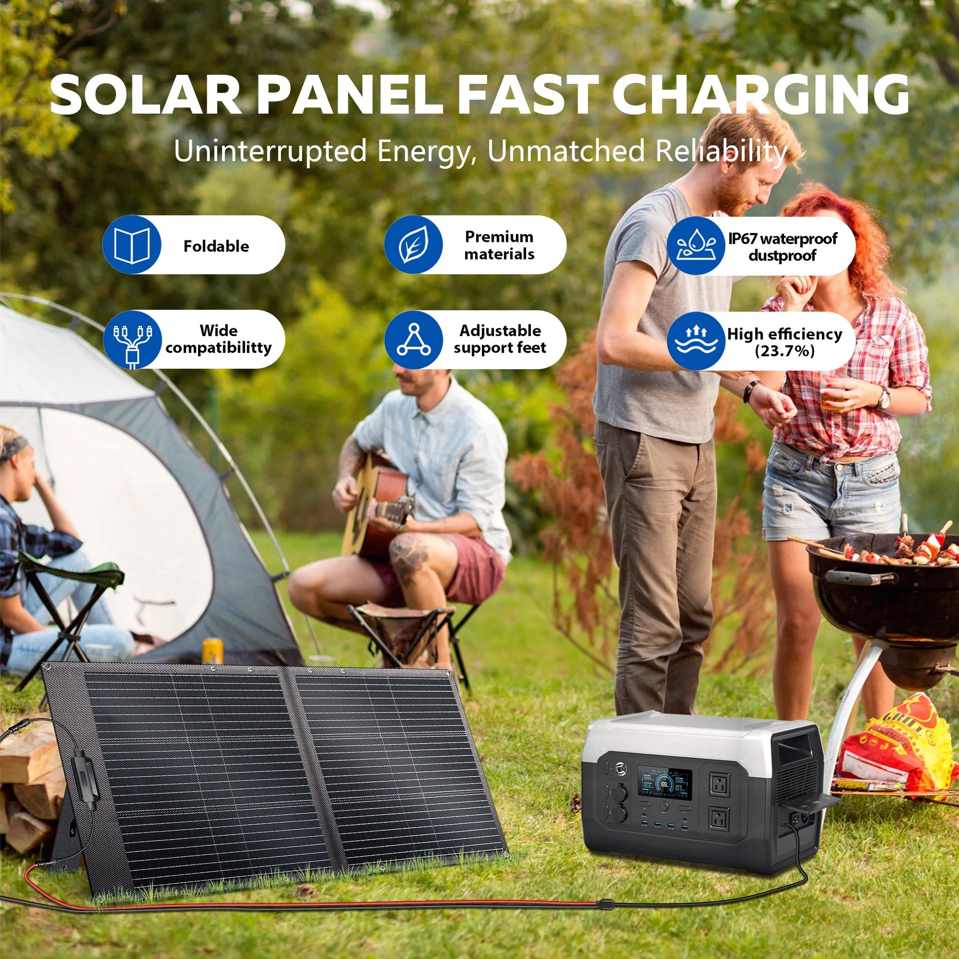 - You have versatile power options: DC 24V/200W, DC 12V/200W, USB-A fast charging, USB-C PD up to 100W, and a 100W solar input.