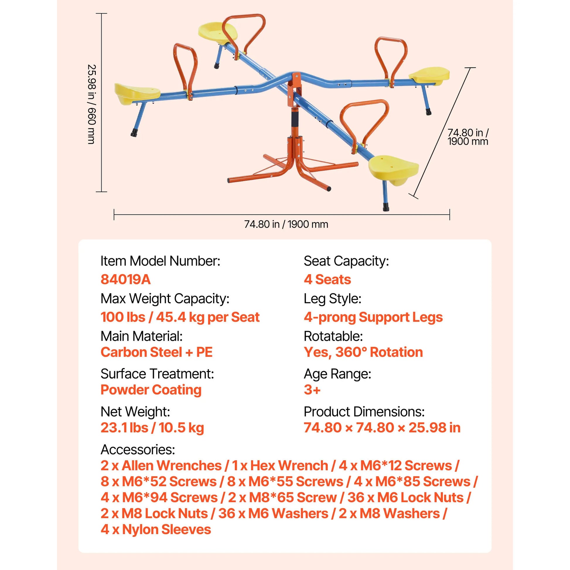 Four Seat Kids Seesaw Teeter Totter With 360 Degree Rotation